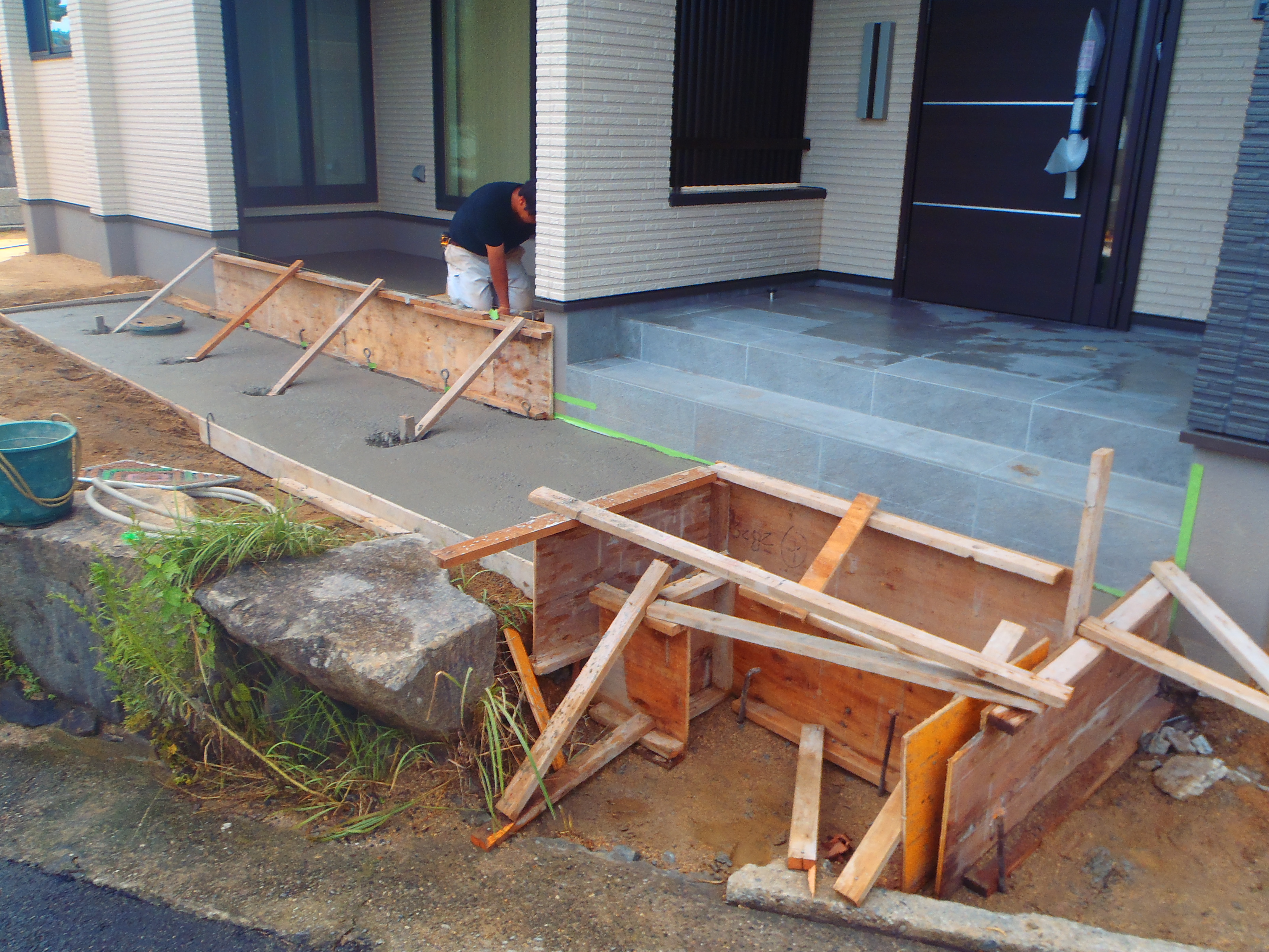 高松市牟礼町外構工事では、デッキ下のコンクリートとアプローチタイルの