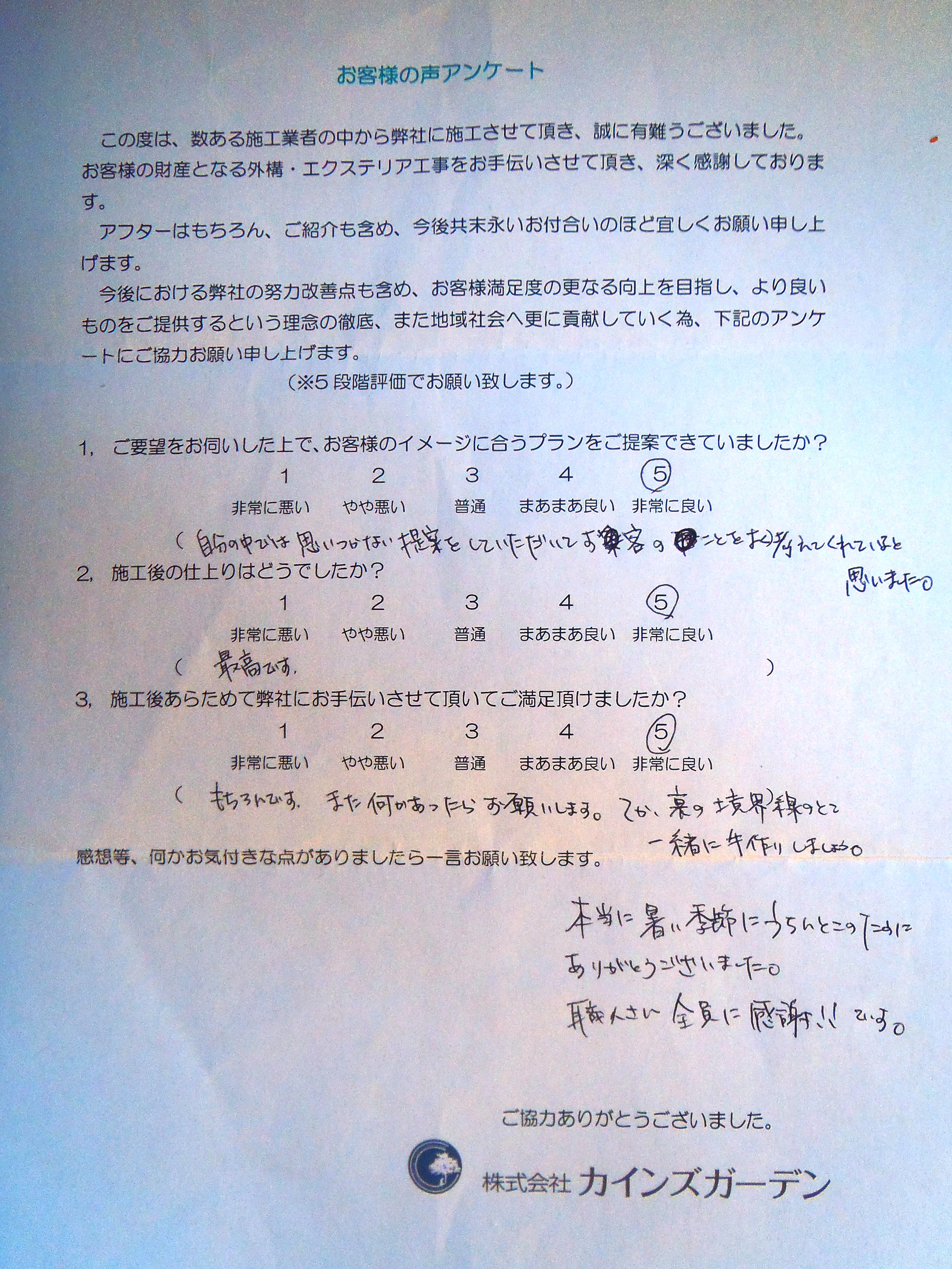 お客様アンケート届きました♪