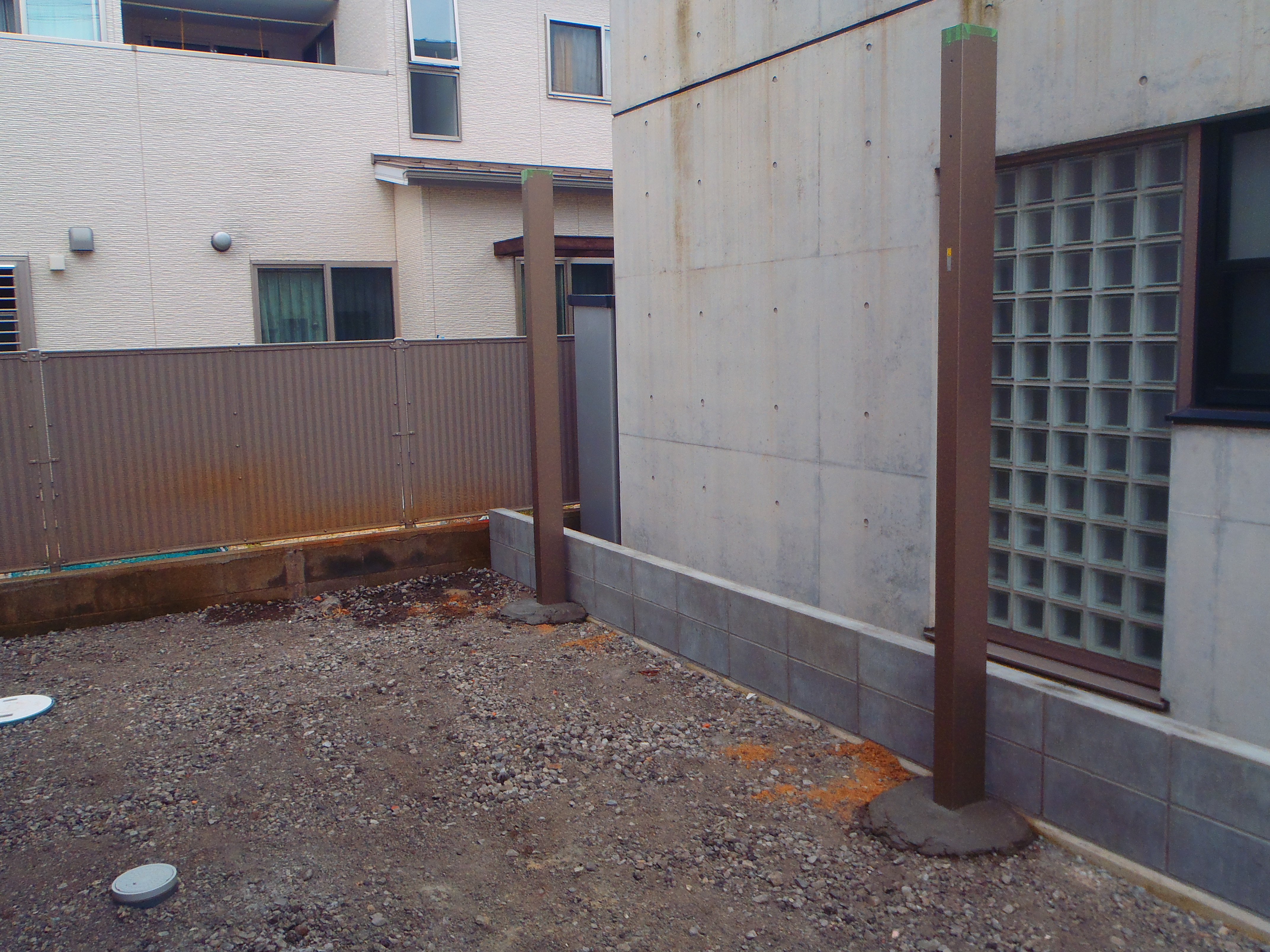 高松市太田下町外構工事ではカーポートの柱施工を開始しました。