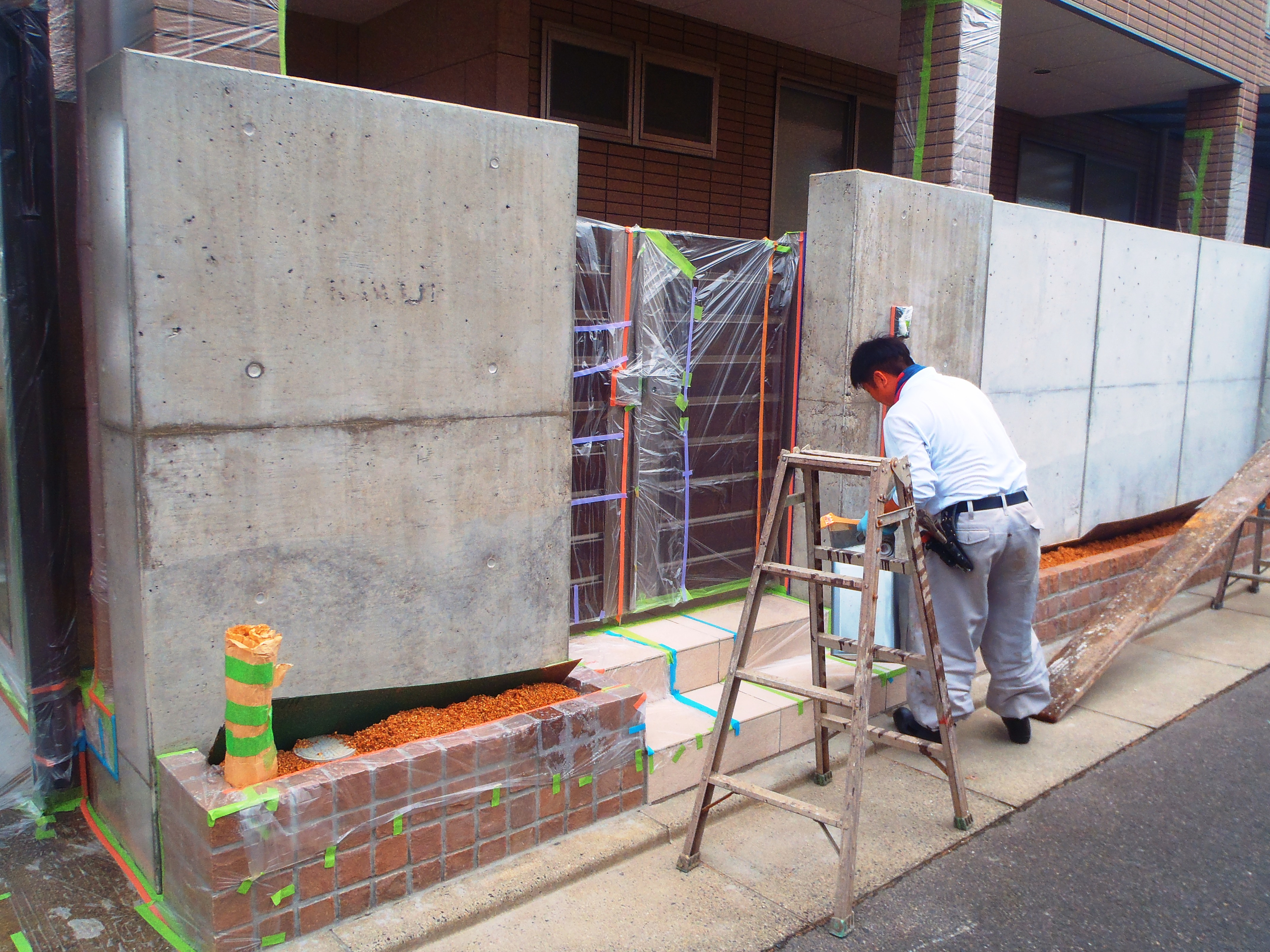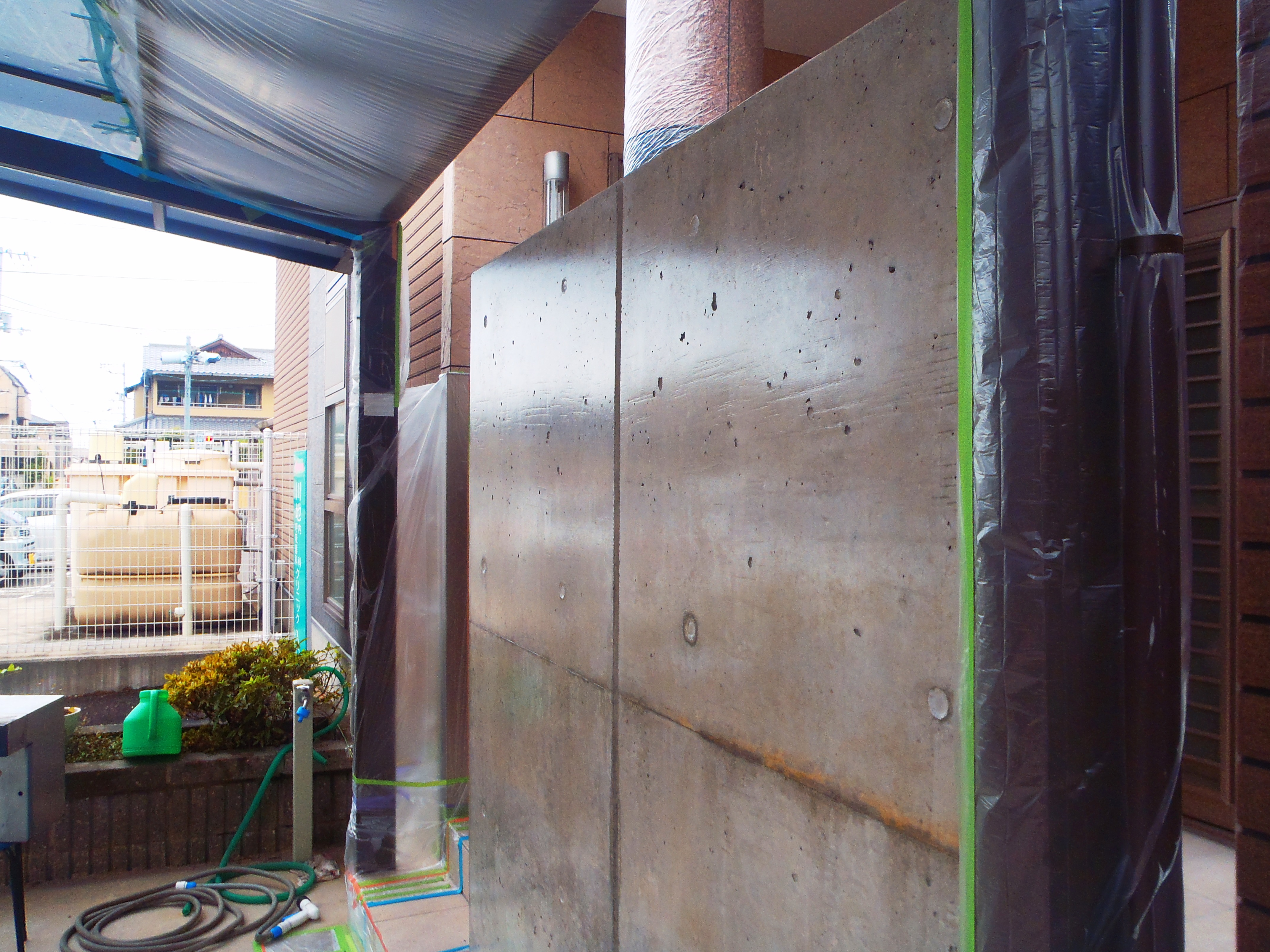 高松市松縄町外構工事では、先日塗装工事の下塗りが終わりましたので