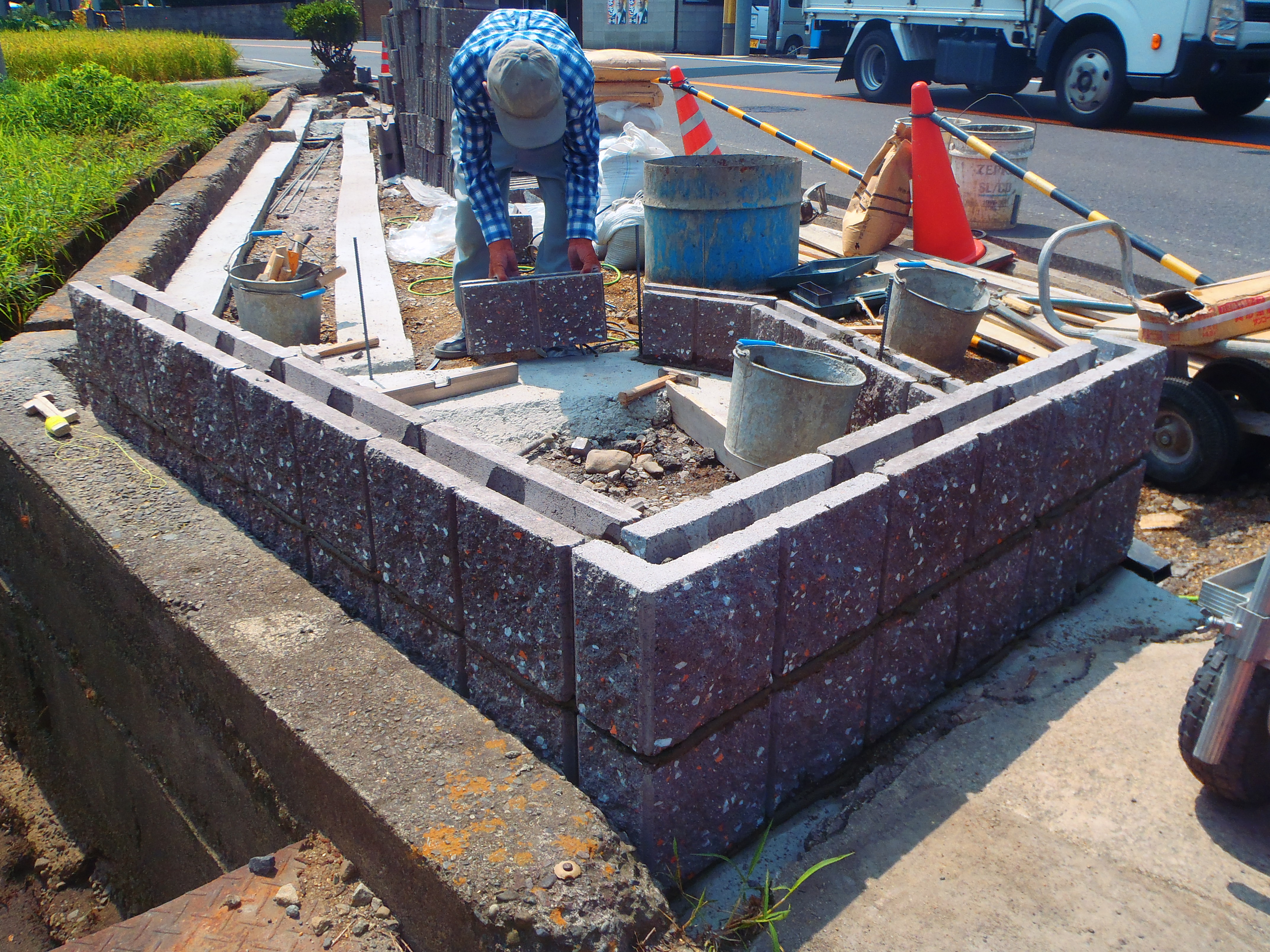 香川県丸亀市飯山町外構工事D様邸では花壇ブロック積み工事が