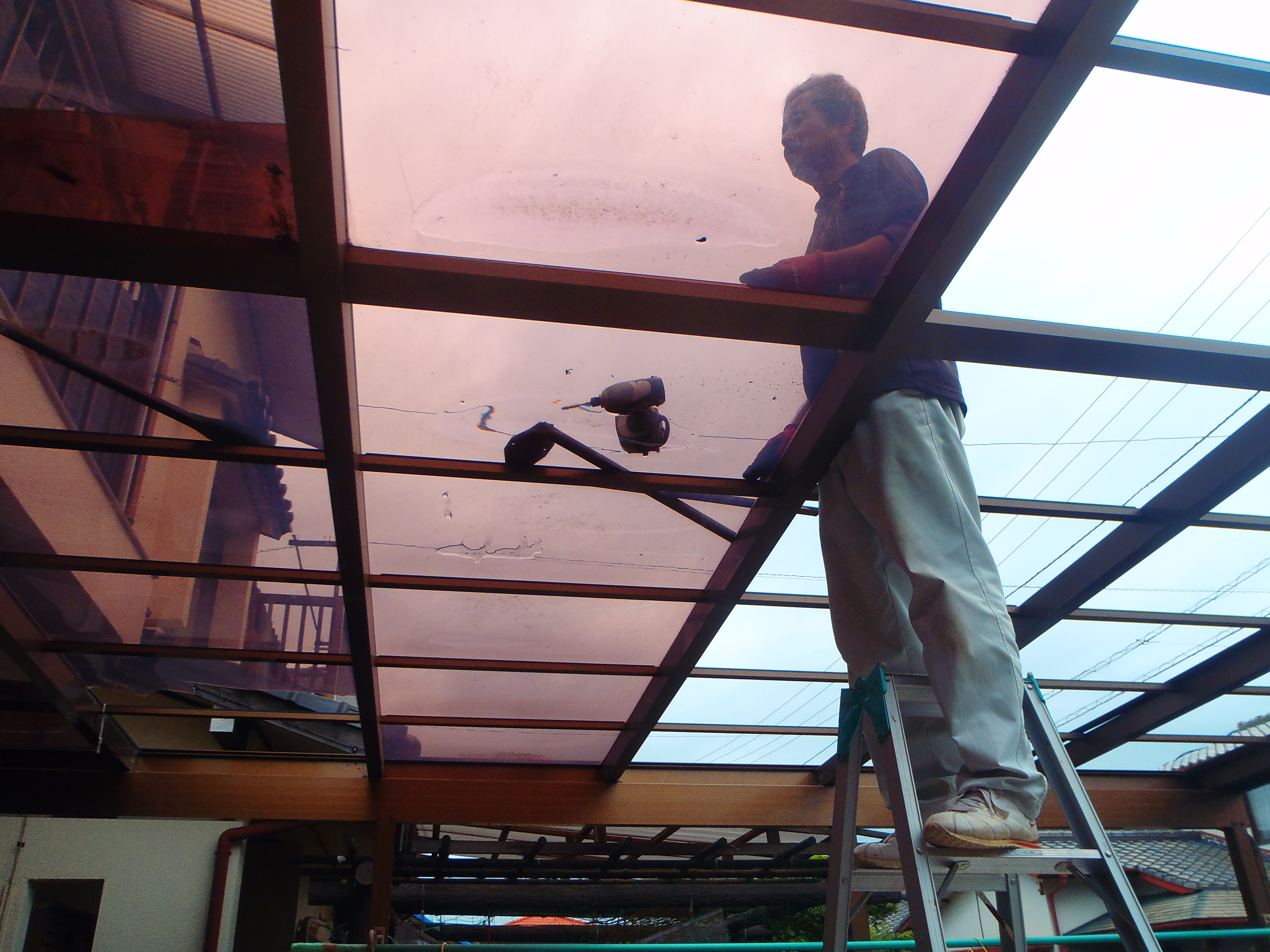 屋根ポリカ取替え工事です。