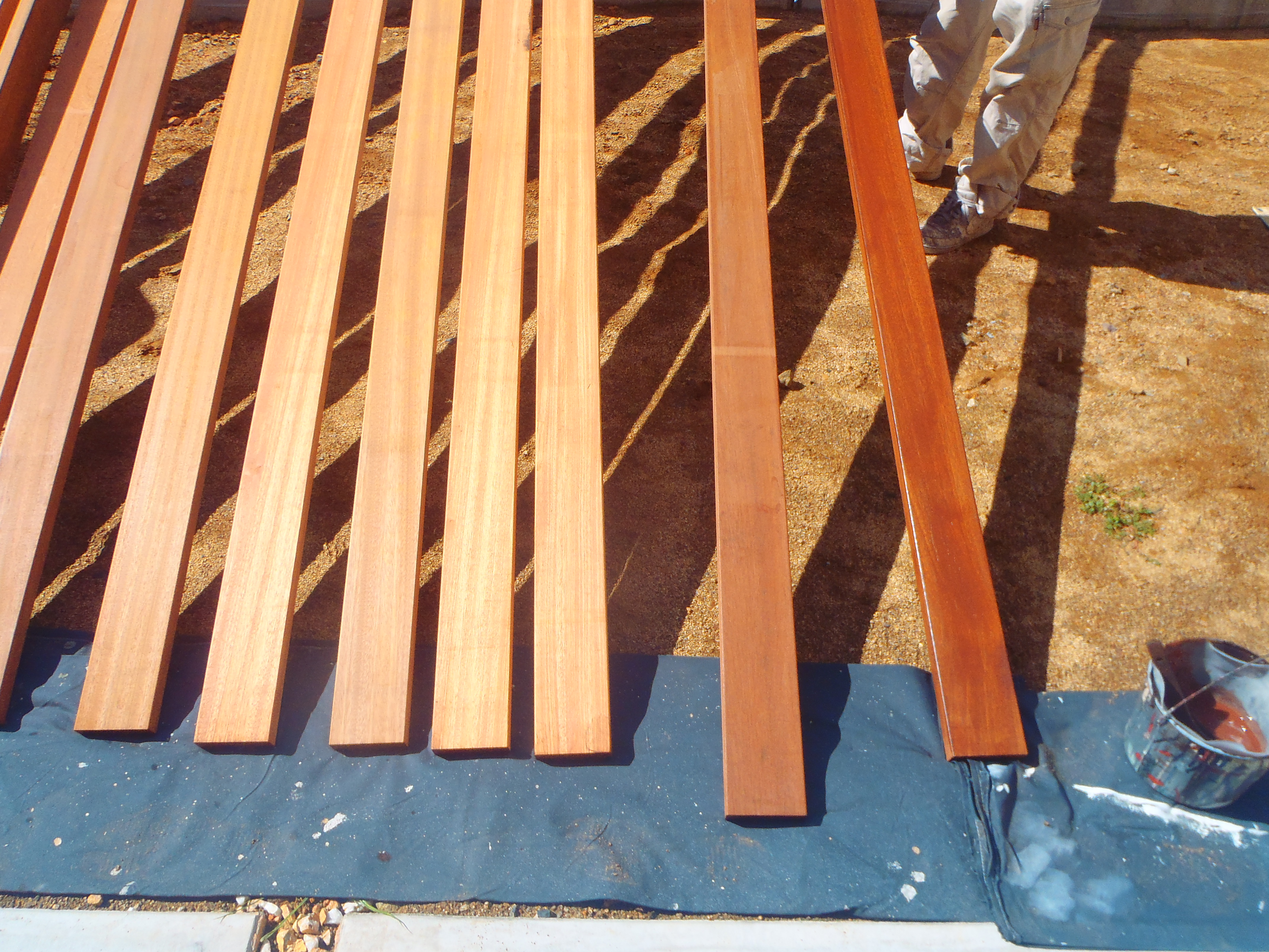 ↓↓これがデッキに使うセランガンバツの無塗装材です。
