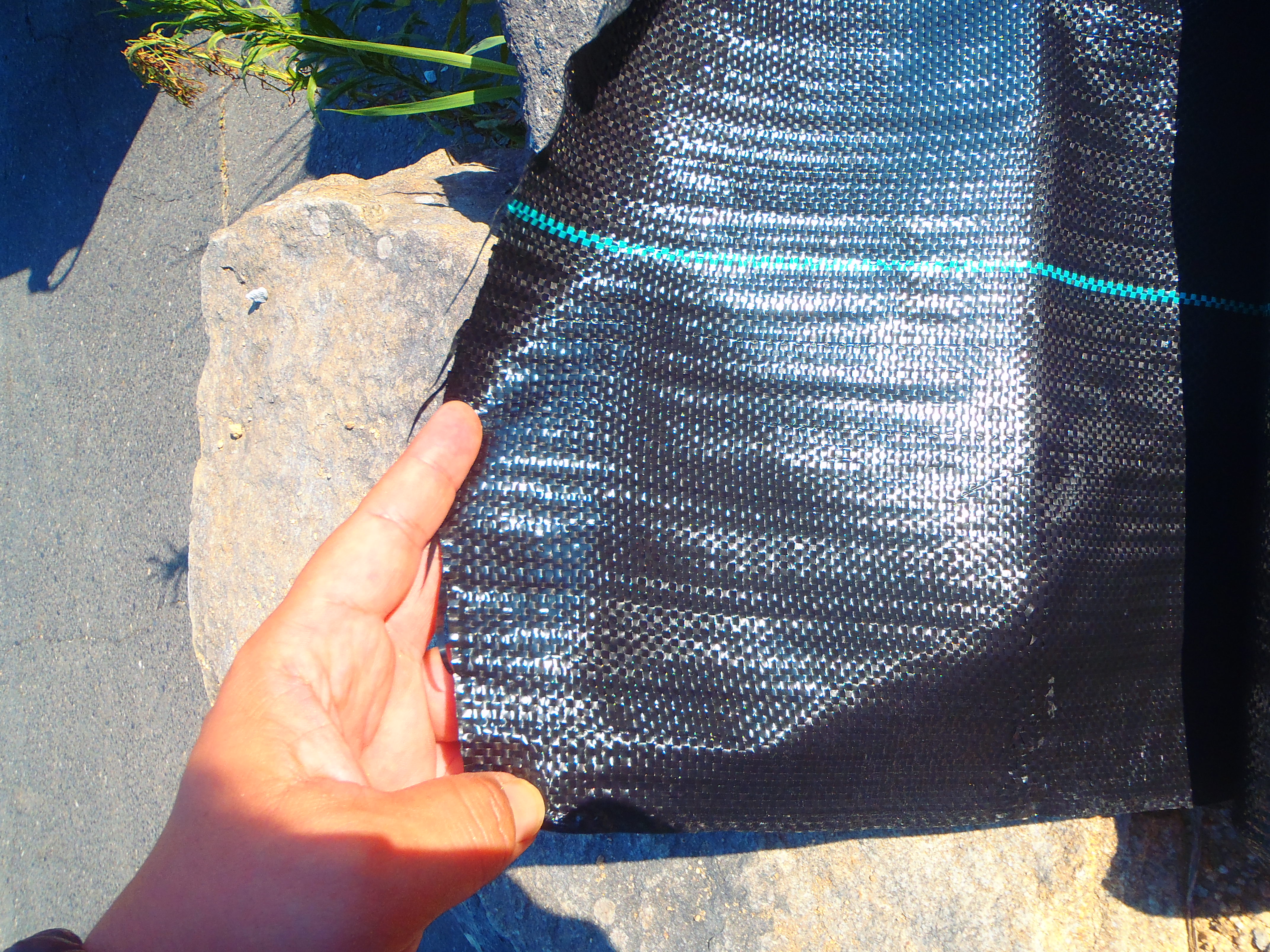 この防草シートは安価な製品です。例えるとブルーシートのような感じですね。