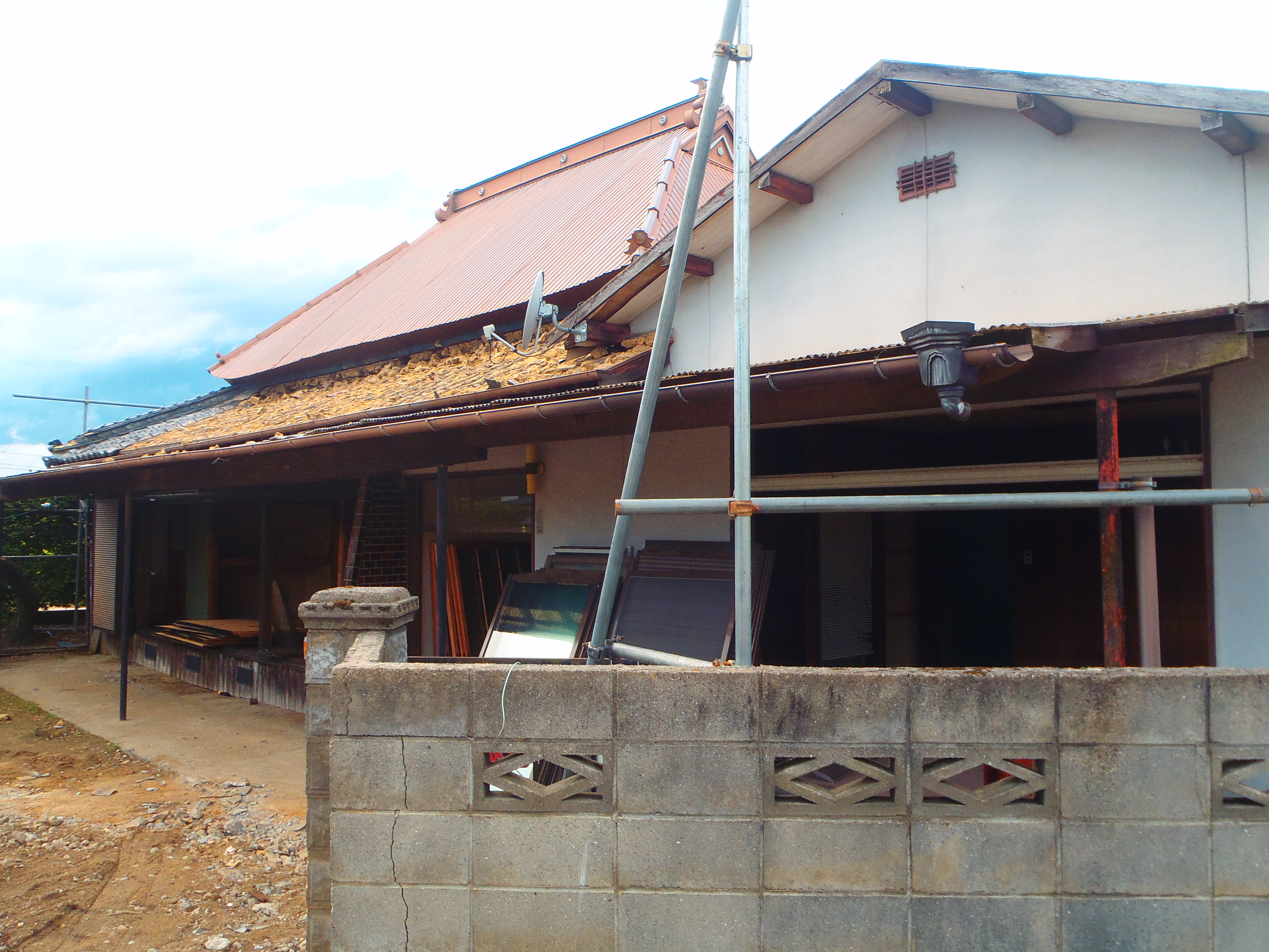 解体工事二日目 福田 | 2015年7月22日 綾川町解体工事では二日目を迎えました。 仮設足場も建ち、室内を整理して、窓・建具等も取り外し、瓦を撤去しました。 じっくり安全に進めて行こうと思います。 Blog ← 新規解体工事着工!!テラス・デッキプラン(セランガンバツ) →