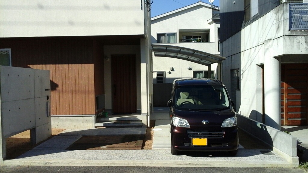 車を臨時で駐車することもある為、下地にコンクリートを敷き、なるべく