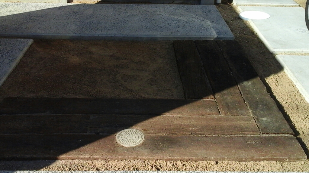 アプローチは生コン洗い出しと枕木のアプローチを施工。
