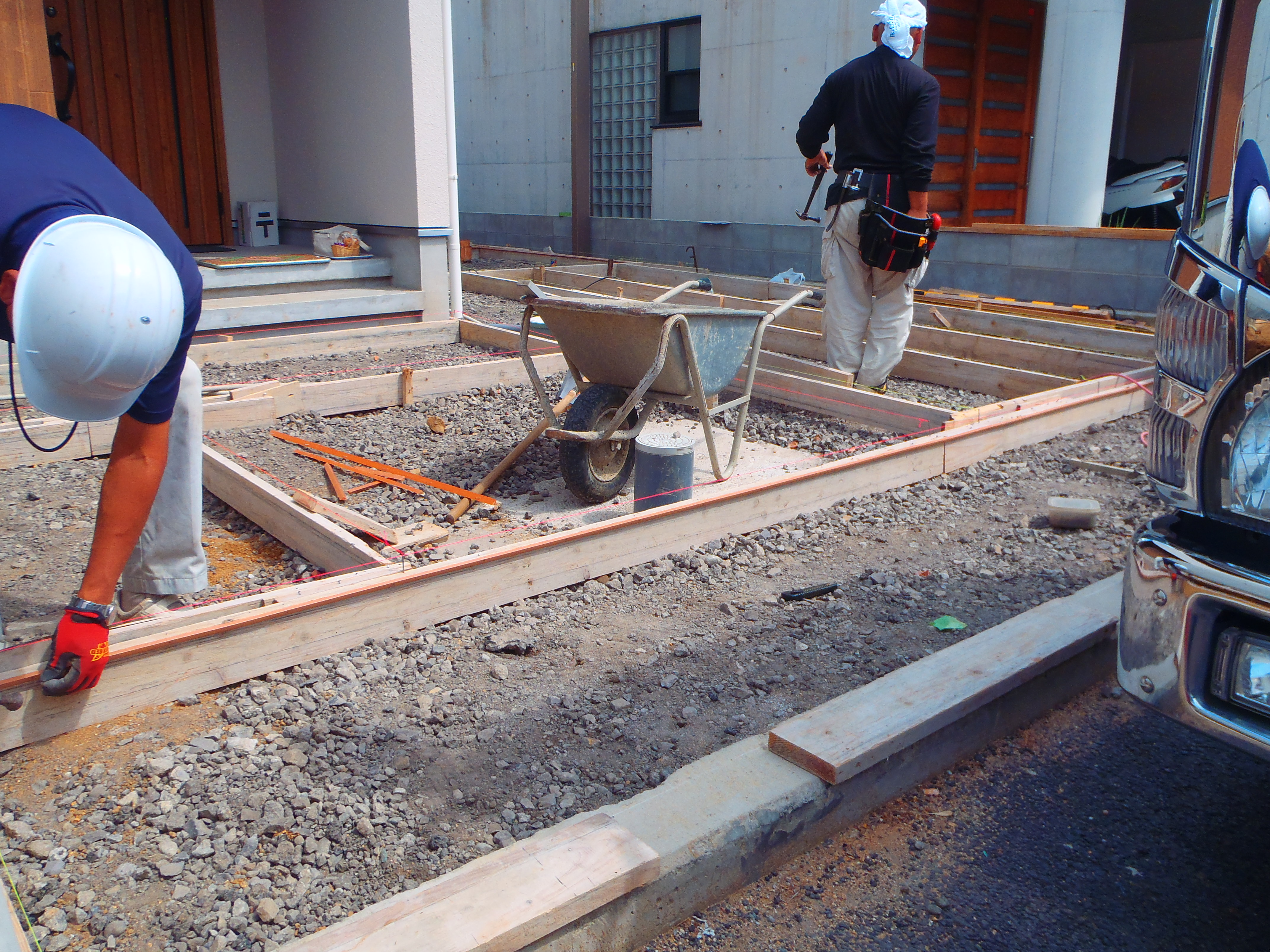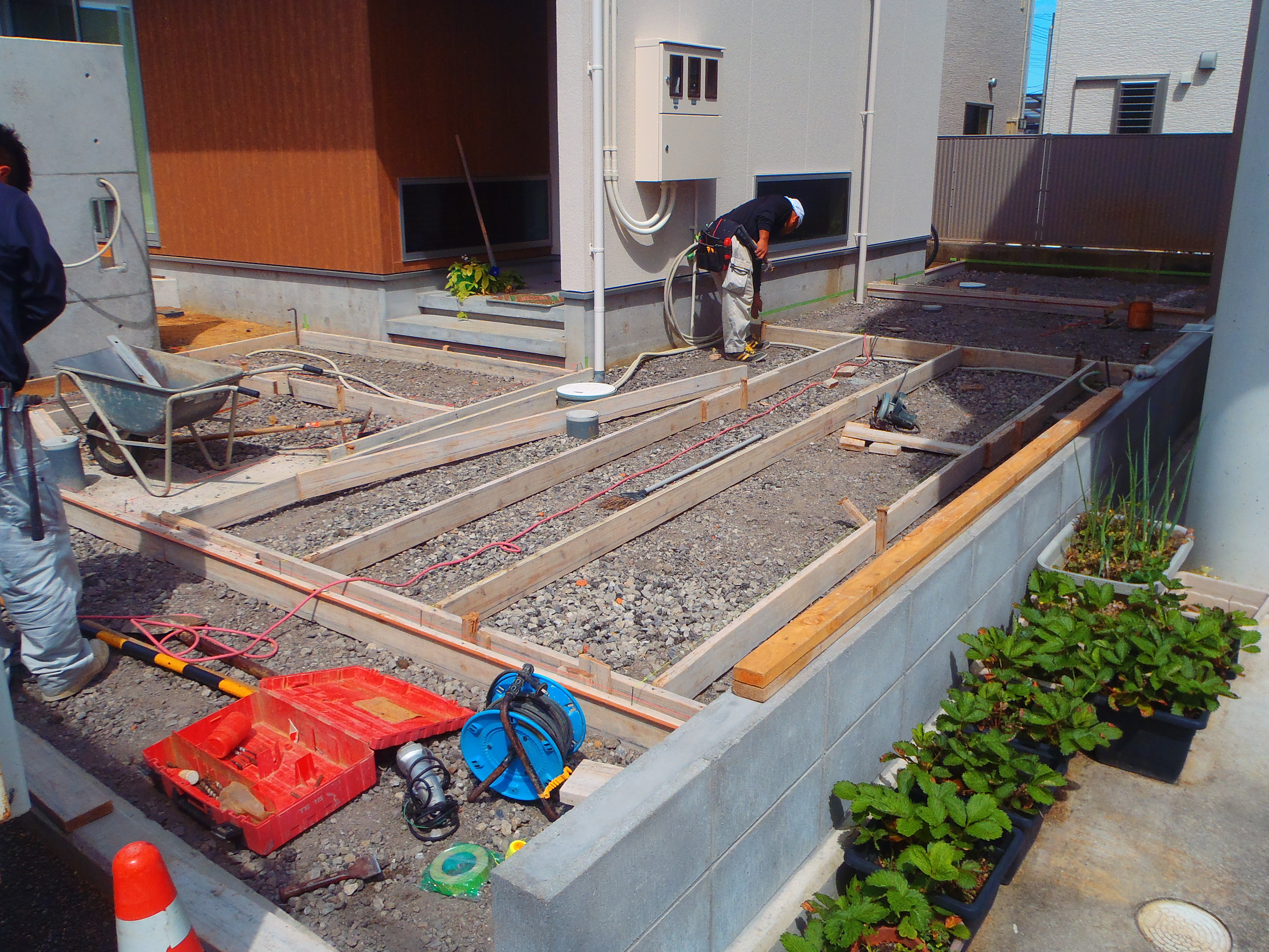 高松市太田下町外構工事の本日の工程は、土間、アプローチ型枠、