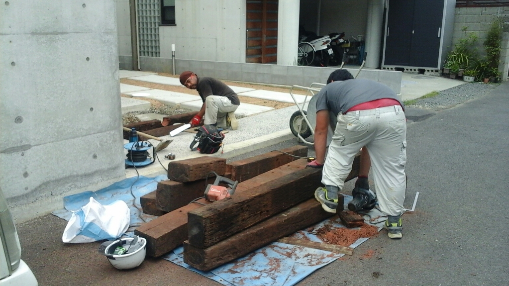 香川県高松市太田下町外構工事(枕木工事)