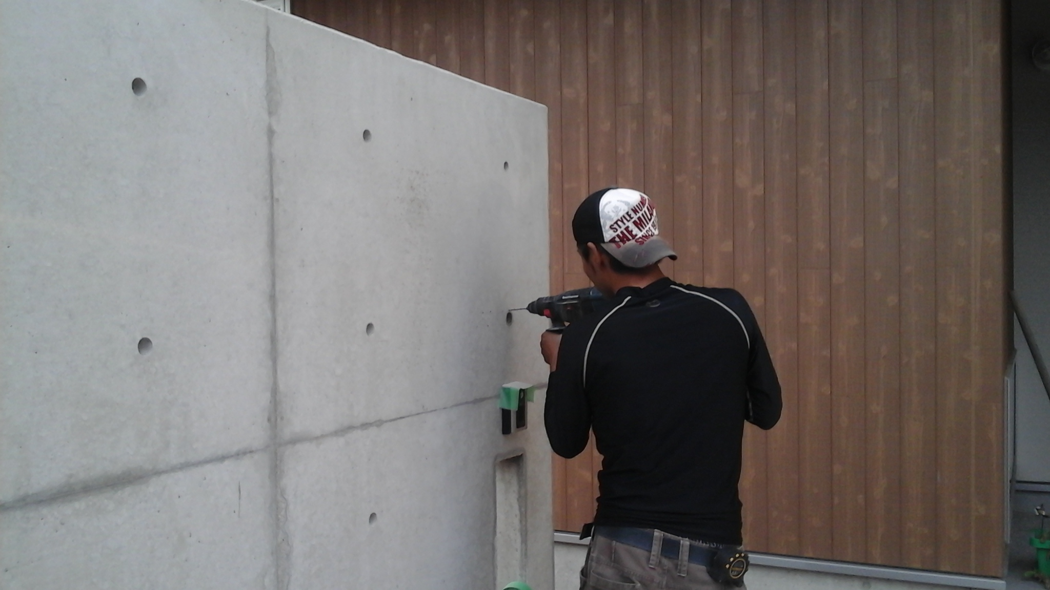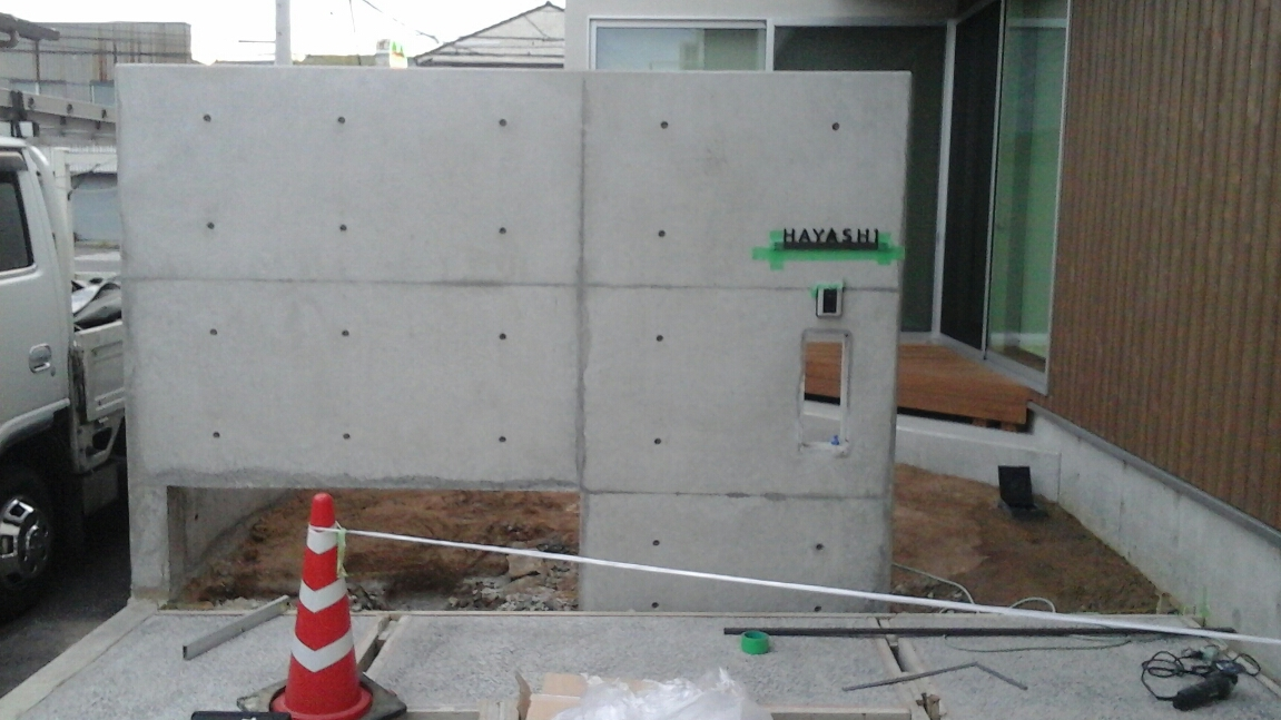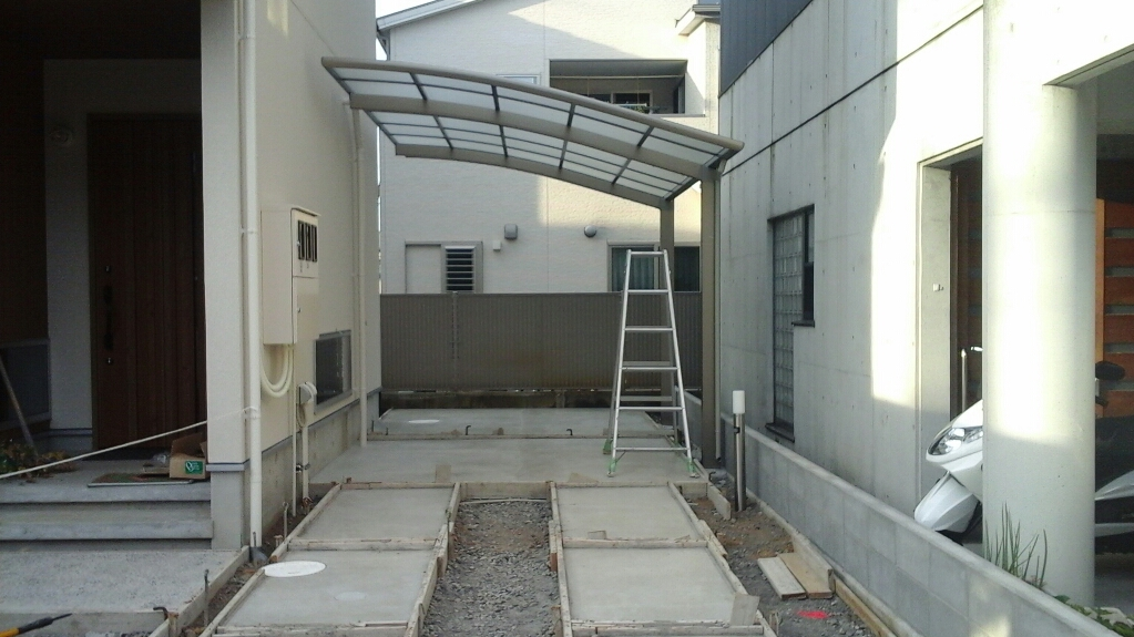 高松市太田下町外構工事では、本日はカーポート工事・表札工事で