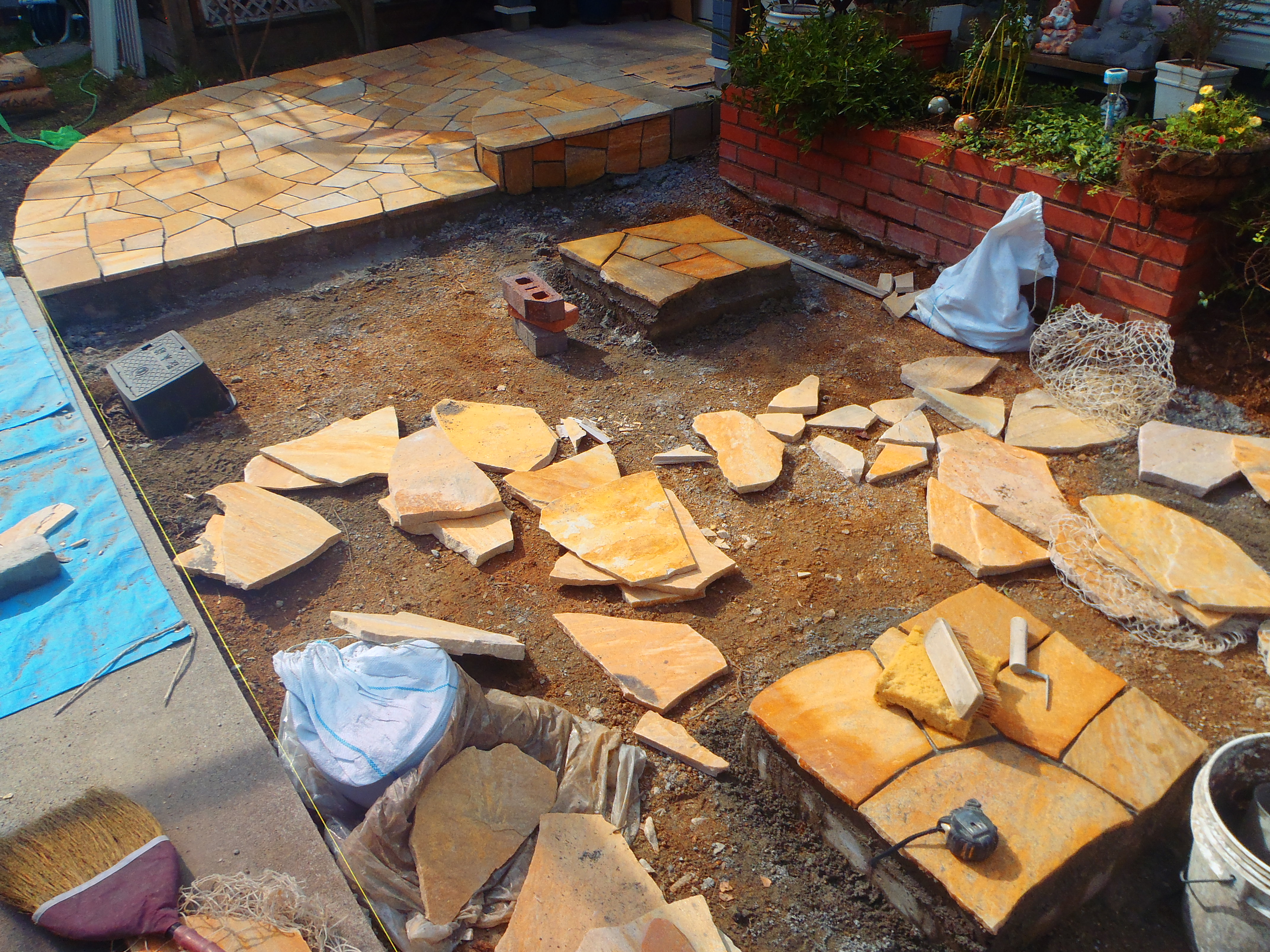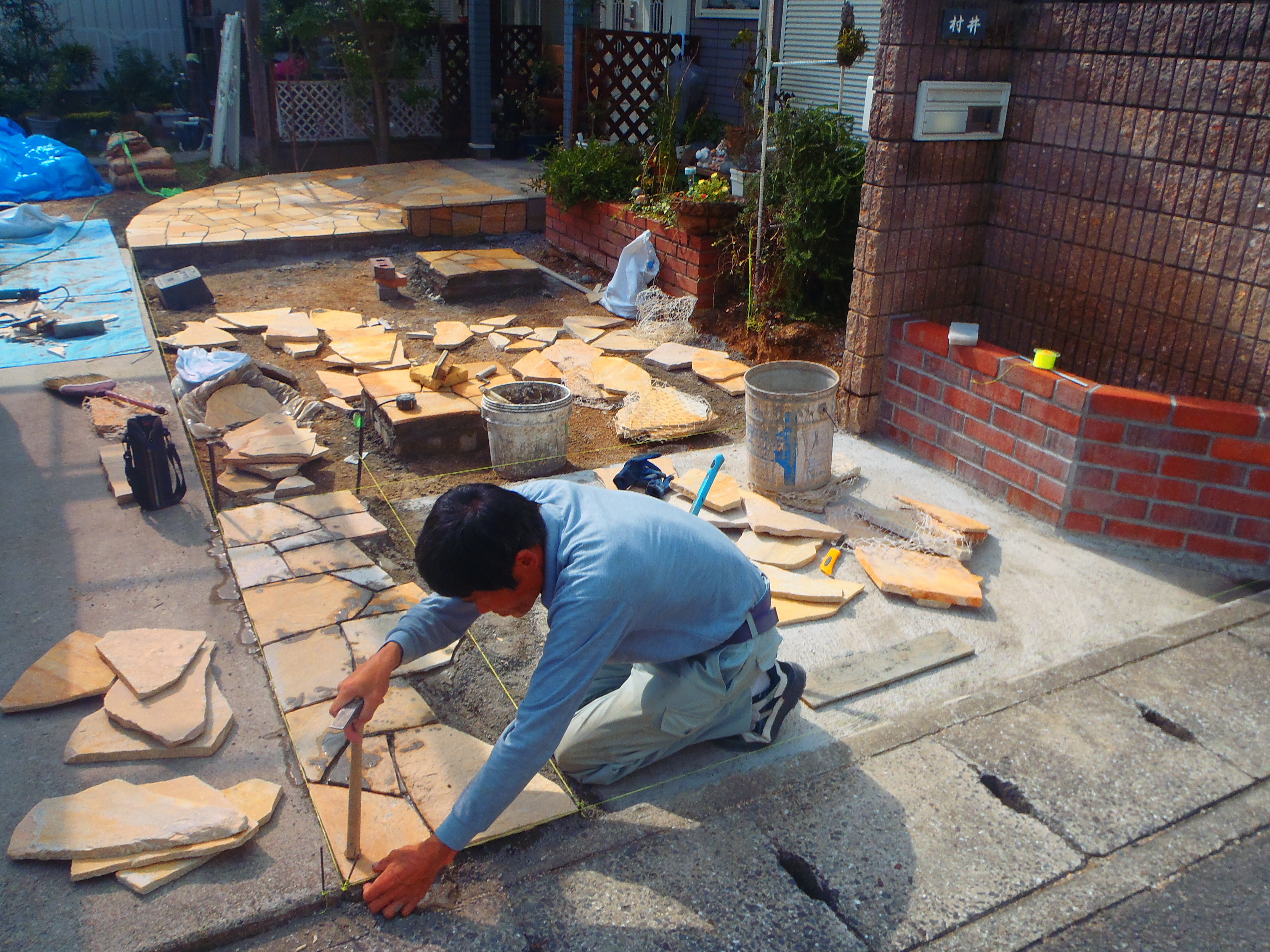 「石張り言うんは結構手間がかかるんやなぁ。」
