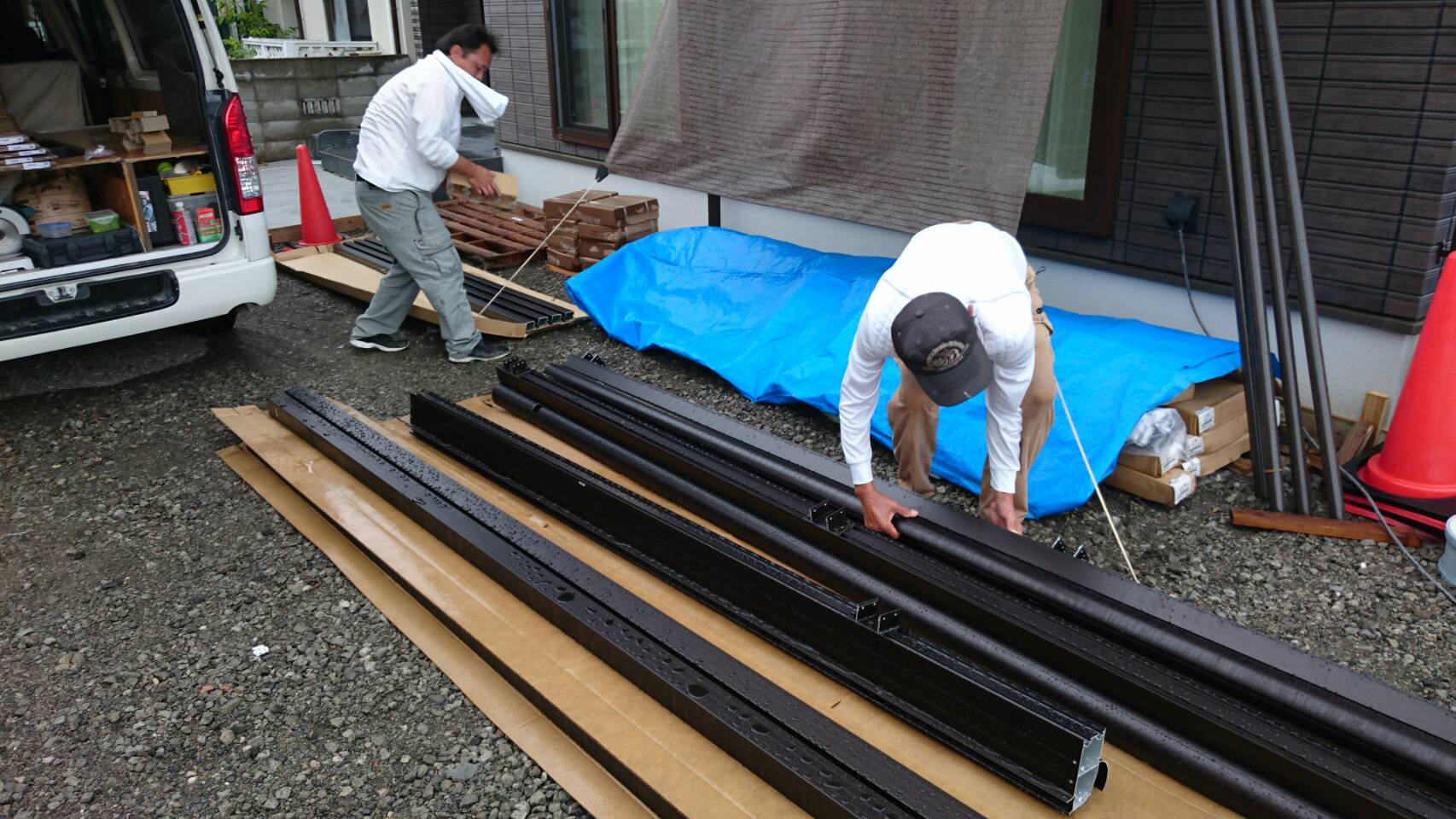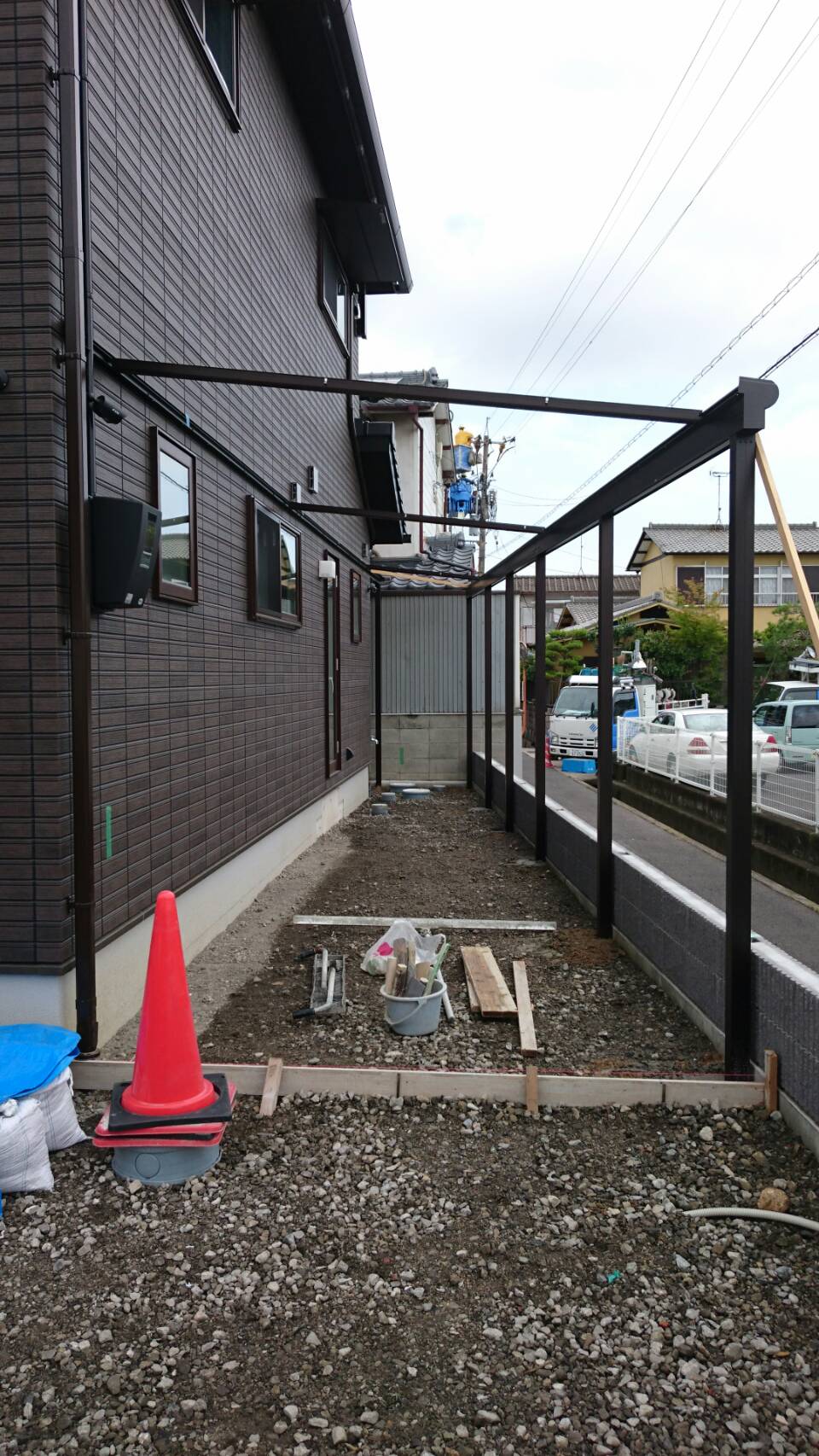 本日2度目の登場の松原です(^-^) 香川県高松市木太町 K様邸の外構工事 途中経過ですよー\(^o^)/ 昨日アルミ職人さんがテラスの柱の取付を行ってくれておりましたね!!! テラスの骨組みが完成しましたね(*^_^*…