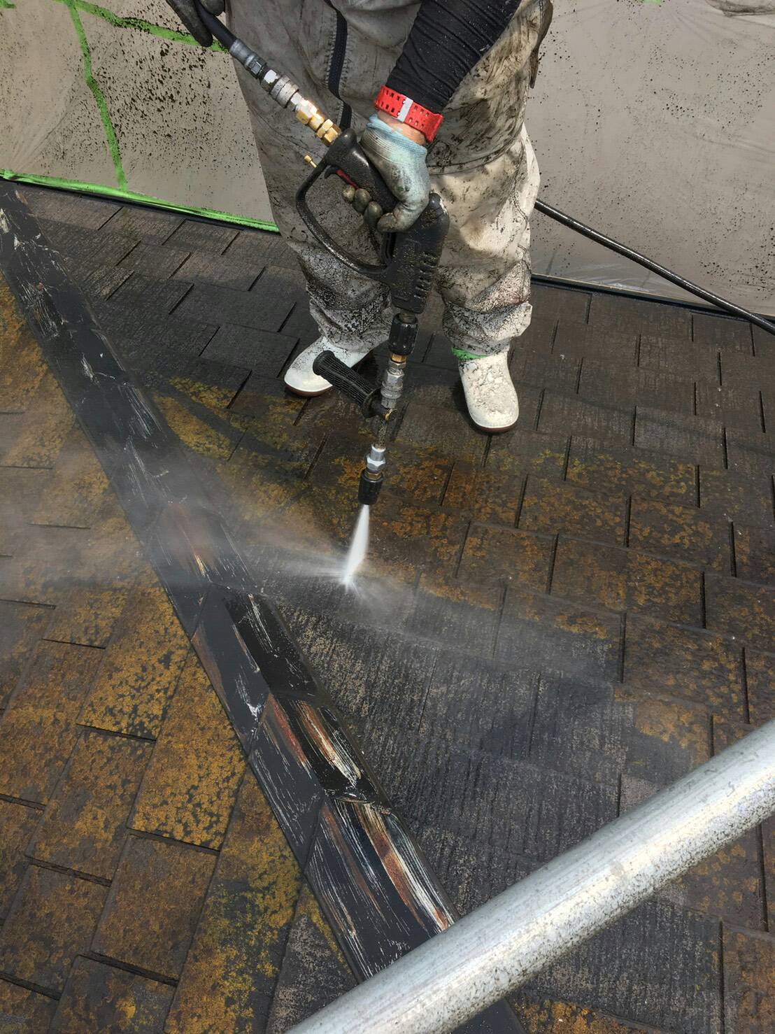 本日3度目の登場の松原です☆彡 香川県坂出市江尻町 M様邸の塗装・サッシ工事の途中経過になりますよ♪ こちらは連休前の工事の様子になります(^^)/ こちらの屋根は高圧洗浄を行う前の写真です! 光の加減でわかりにくいかも…