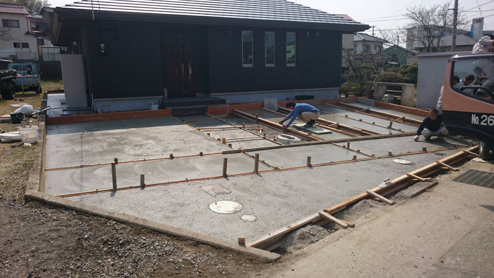 本日2回目の松原です(^^)/ 香川県高松市屋島西町 T様邸の昨日の現場の様子になりますよ☆彡 先週はまだ土だった所は… 型枠がされてそこに土間コンクリート打設が行われましたよ!! 門壁のブロック積みも終わっていますね(…