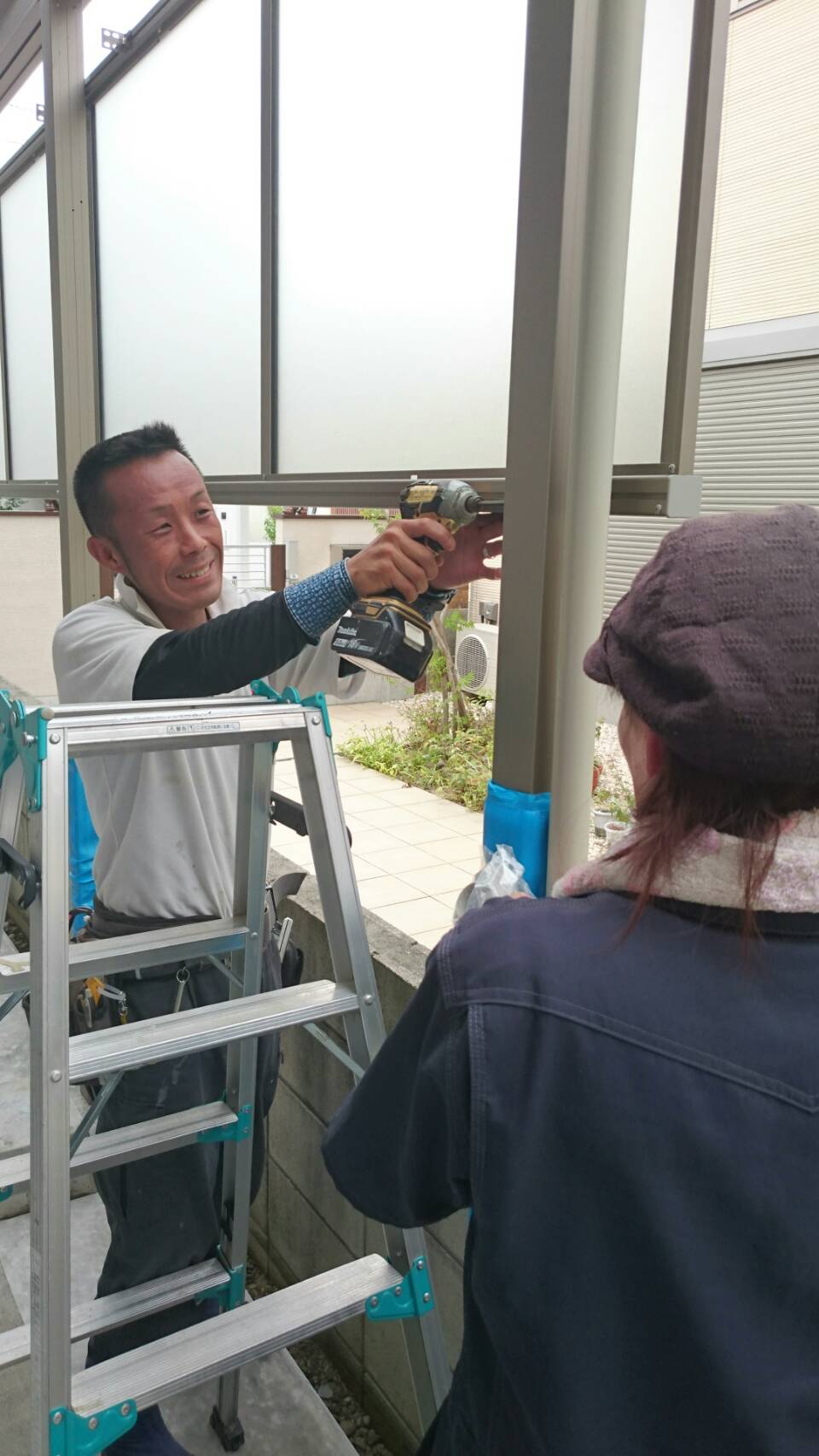 また、登場しましたー☆ 松原です(*^皿^*) 香川県高松市小村町 A様邸の現場では 表札の取り付け作業が行われておりますよー♪ お茶目なアルミ職人の久保さんが現場入りしての作業です。 お疲れ様です(^^)/ 表札を取り…