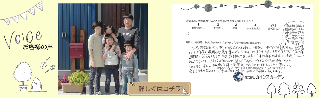 皆様こんばんわ~(^^♪ カインズガーデン森藤です。 いつもカインズガーデンのホームページをご覧頂き、ありがとうございます(∩´∀`)∩ 今回は、完工のご報告でございますよ~(^◇^) 本日のお客様は(∩´…